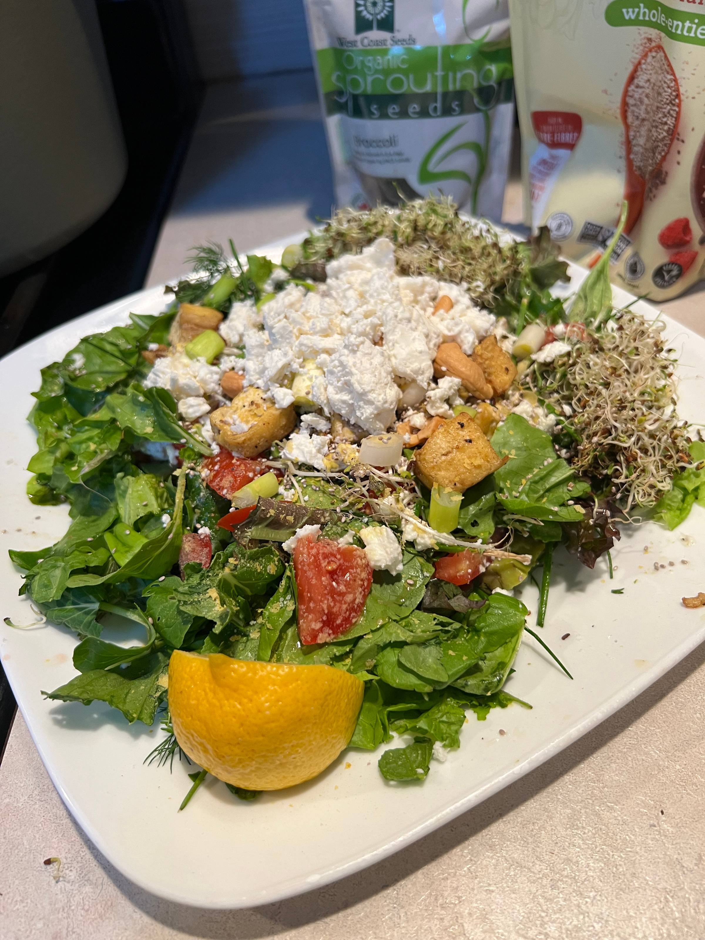 Organic alfalfa OR Organic red clover home-grown sprouts (supplies available from West Coast Seeds)